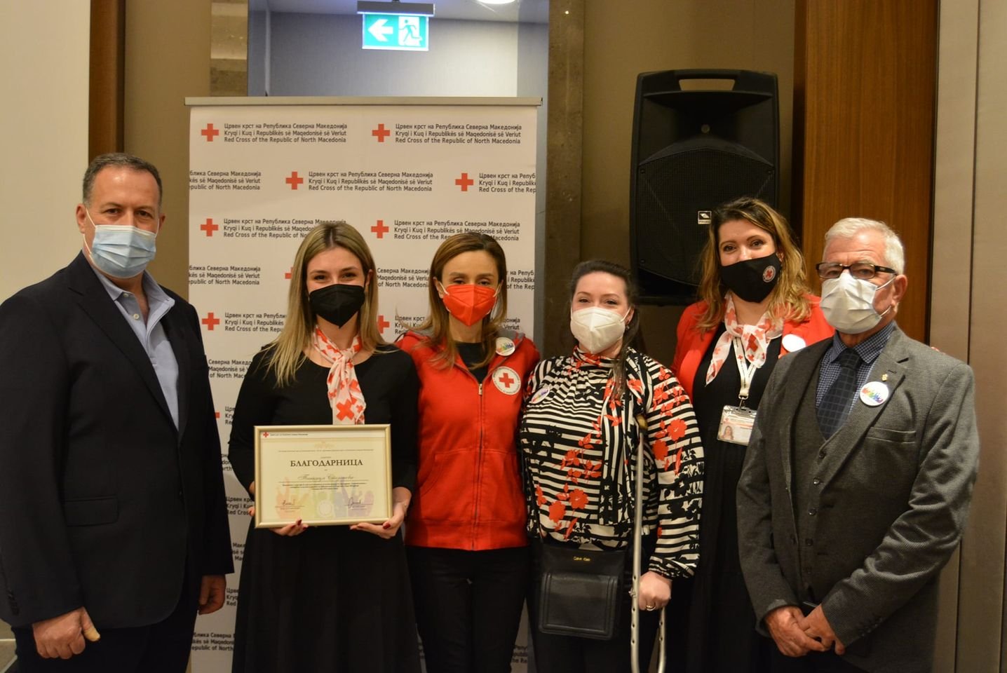 Нашата Танкица Стојанова ја доби престижната Благодарница на Црвен крст на Република Северна Македонија за особен придонес во волонтерството за оваа година.