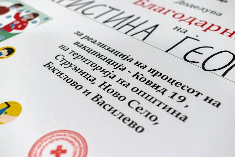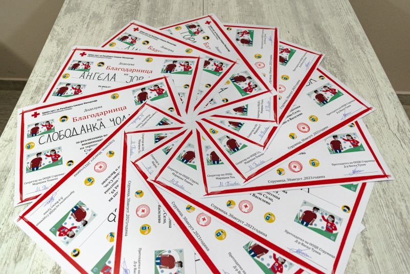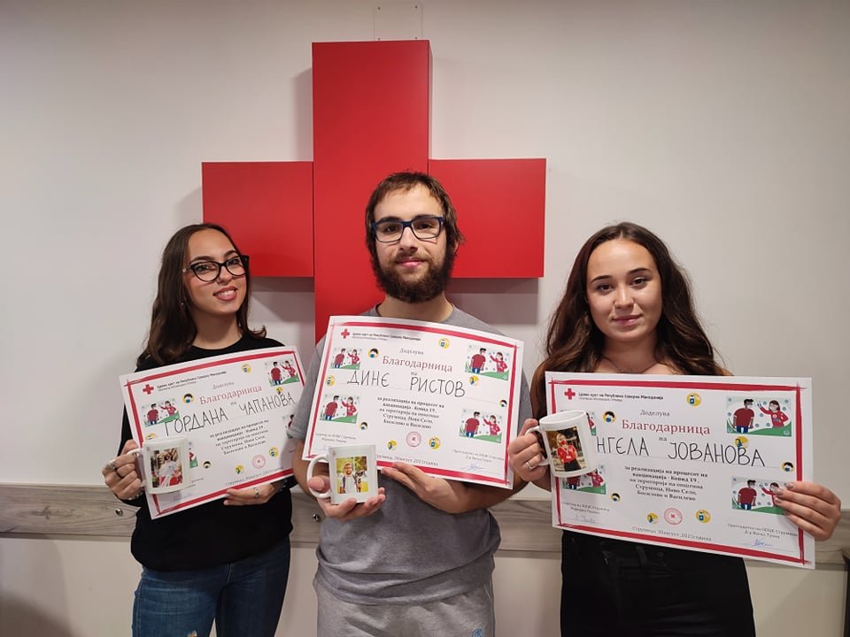 Општинската организација на Црвен крст Струмица им додели благодарници на повеќе наши волонтери од Клубот на млади по повод нивното матурирање, но и за досегашниот ангажман во повеќе проекти на Организацијата, како и за ангажманот во процесот на вакцинација.
