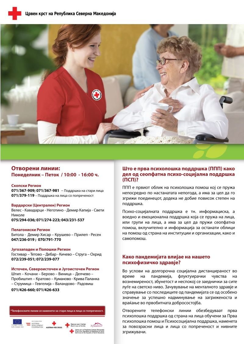 јули 8, 2021Отворени линии на Црвен крст за помош на повозрасни и лица со попреченостЛинија за психо социјална подршка прва психолошка помош на стари лица и лица со попреченост.Вие не сте сами. Tags: линии, Помош, Црвен крст < врати се назад