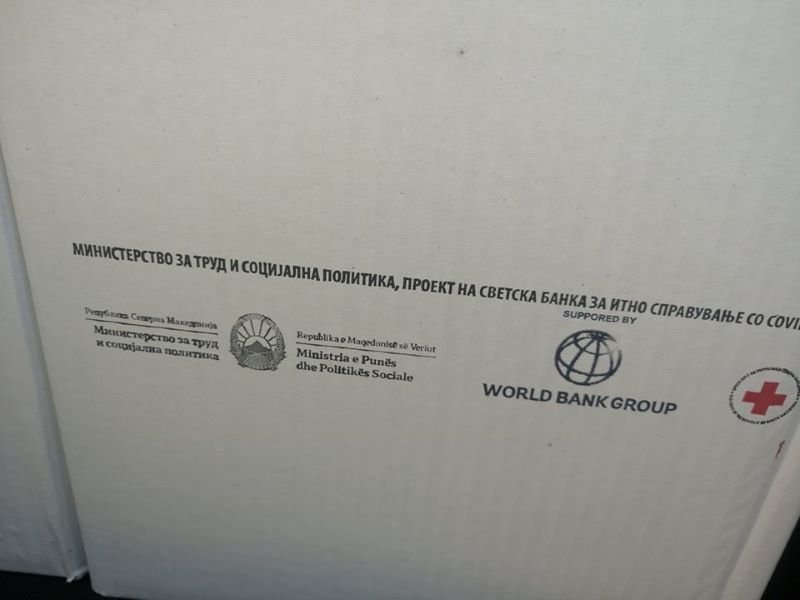 Пакетите се обезбедени преку Министерството за труд и социјална политика, во рамки на проектот на Светска банка за итно справување со Ковид-19.